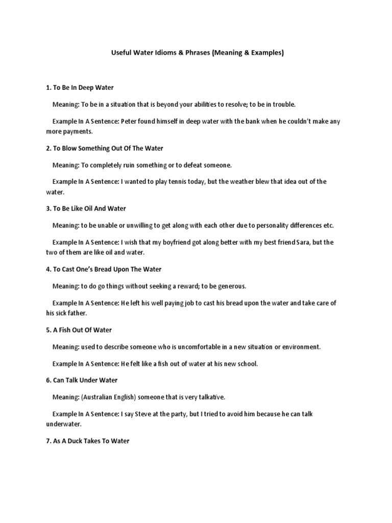 Useful Water Idioms & Phrases (Meaning & Examples) 1. To Be in Deep